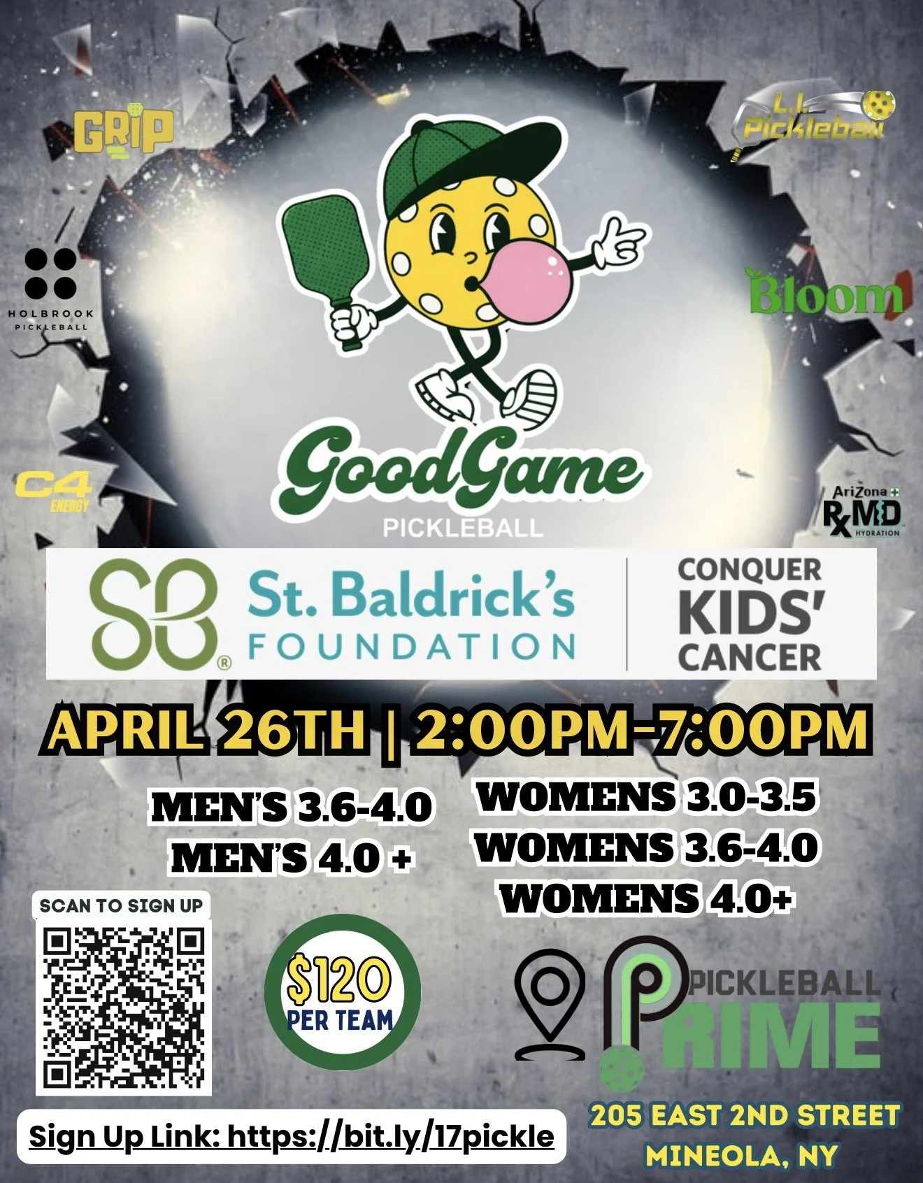 GoodGame Pickleball and Pickleball Prime are proud to announce our next tournament together — raising donations and bringing awareness to the St. Baldrick’s Foundation 💚The St. Baldrick’s Foundation is a volunteer-powered charity committed to funding life-saving childhood cancer research. Their mission is to support the most promising research to find cures and better treatments for kids battling cancer — giving hope to families and helping ensure that children fighting this disease are not fighting alone.