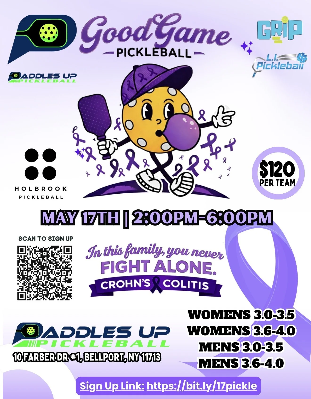 GoodGame Pickleball is proud to team up with Paddles Up for our Second Annual Crohn’s & Colitis Awareness Tournament This marks our second annual tournament dedicated to raising donations and supporting the fight for a cure for Crohn’s and Colitis. At GoodGame Pickleball, we believe that when you step on the court with us, you’re never fighting alone—whether this battle affects you personally or someone you love, GoodGame has your back.